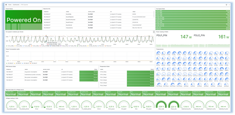全面监控:监控告警、主动防护。基于硬件的BMC数据和基于软件的系统数据可实现双向抓取,图形化分析。其中有用130多个健康参数,全面监控服务器集群的运行状态,患于未然,同时支持包括微信等多种告警策略功能。