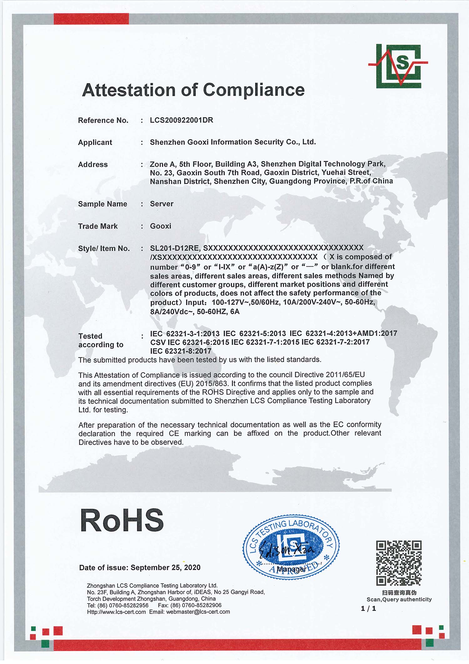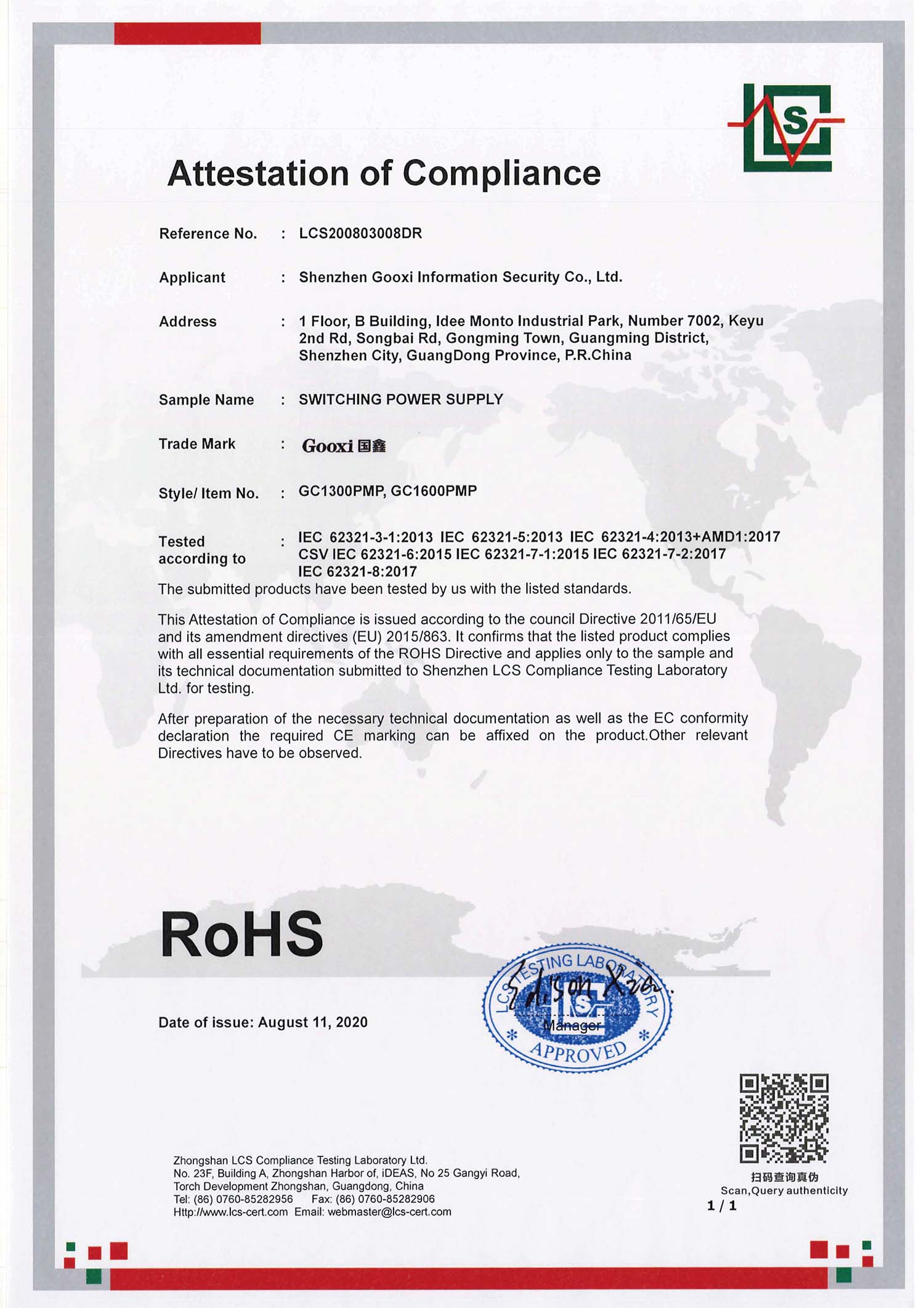 RoHS证书